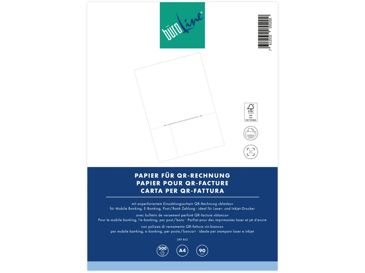 BÜROLINE Bulletin de vers. QR-facture 389862 90g, perforé/ blanco 500 pcs.