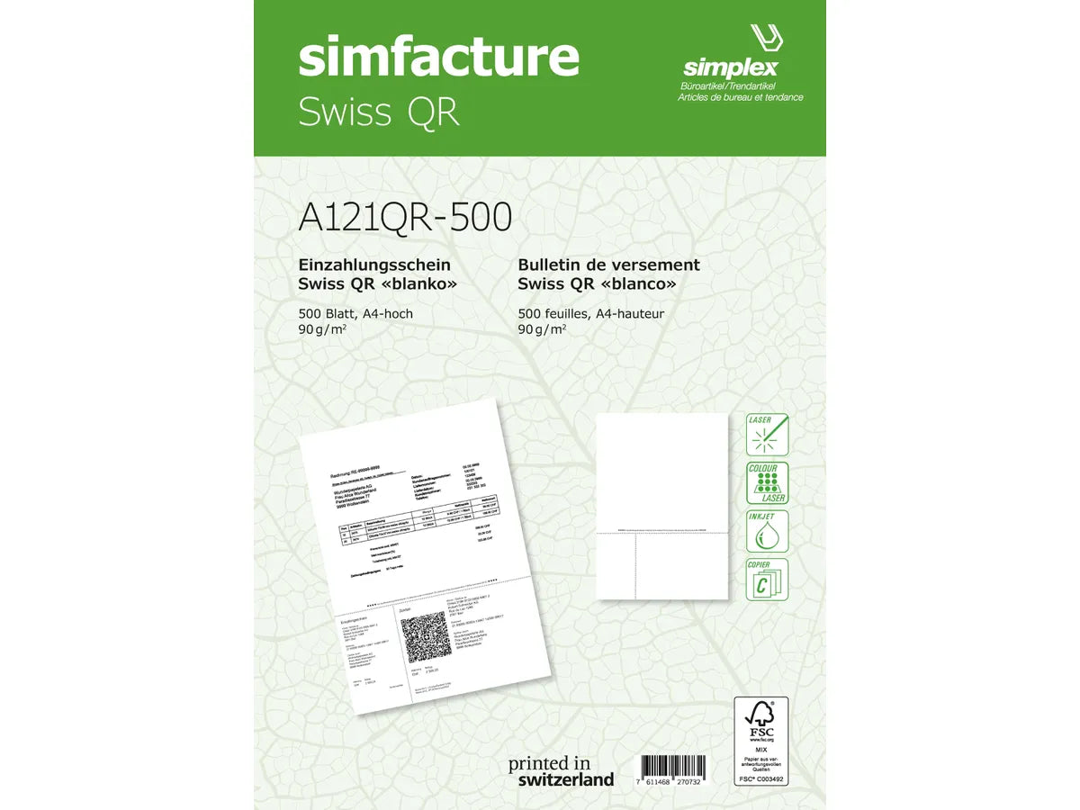 SIMPLEX Simfacture Swiss QR FSC A4 A121QR-500 universel, 90g 500 flls.